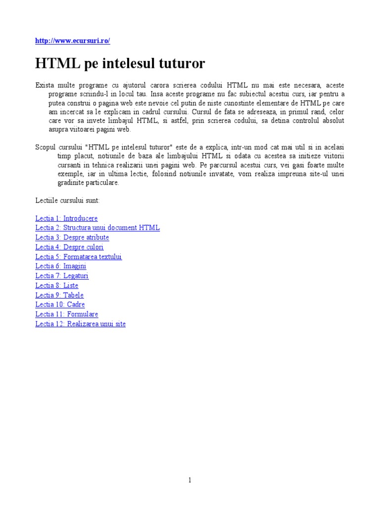 Html Pe Intelesul Tuturor Pdf Document
