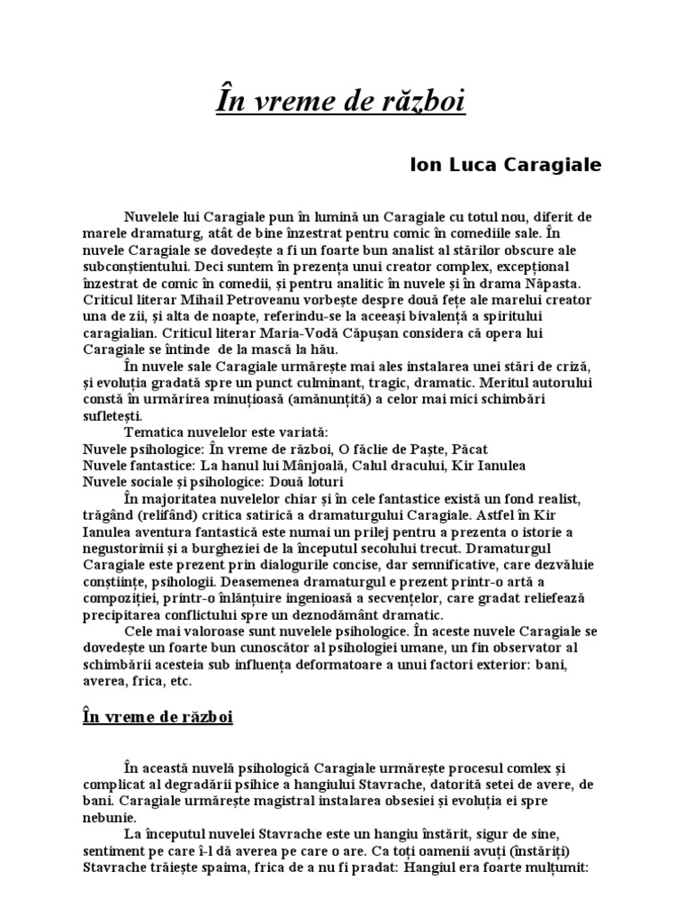 I L Caragiale In Vreme De Razboi Comentariu Bac Pdf Free Download