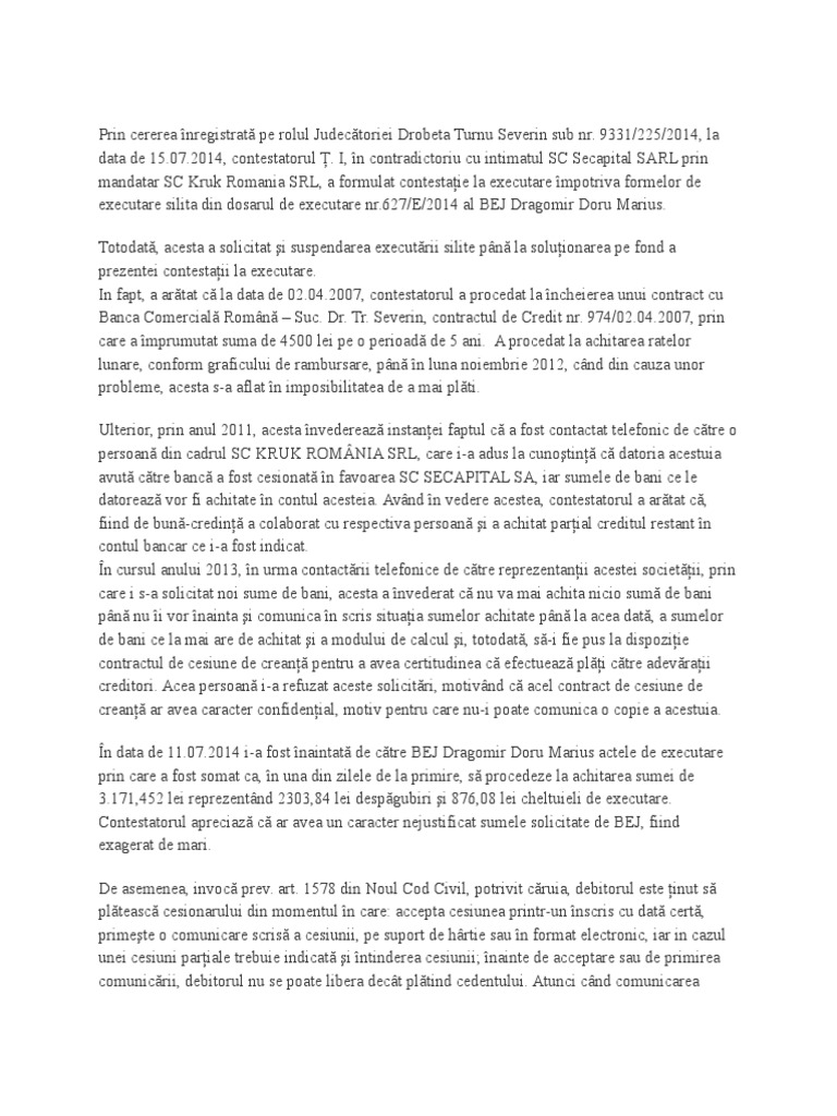 Prin Cererea Inregistrată Pe Rolul Judecătoriei Drobeta Turnu Severin Sub Nr