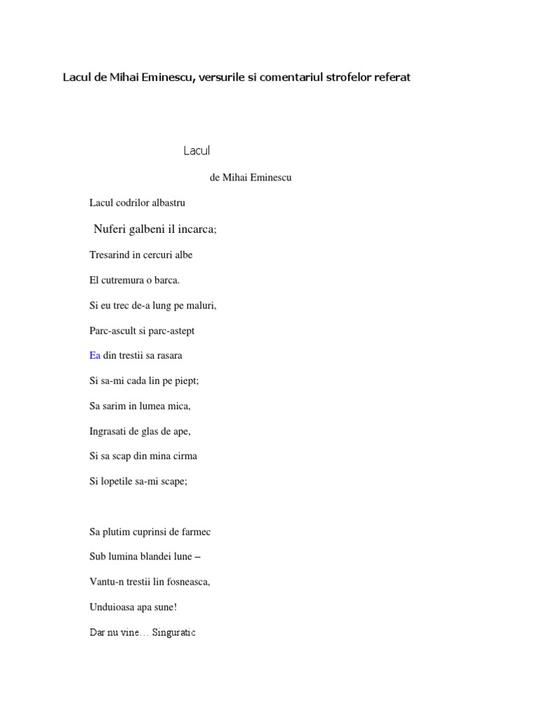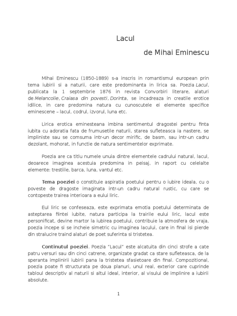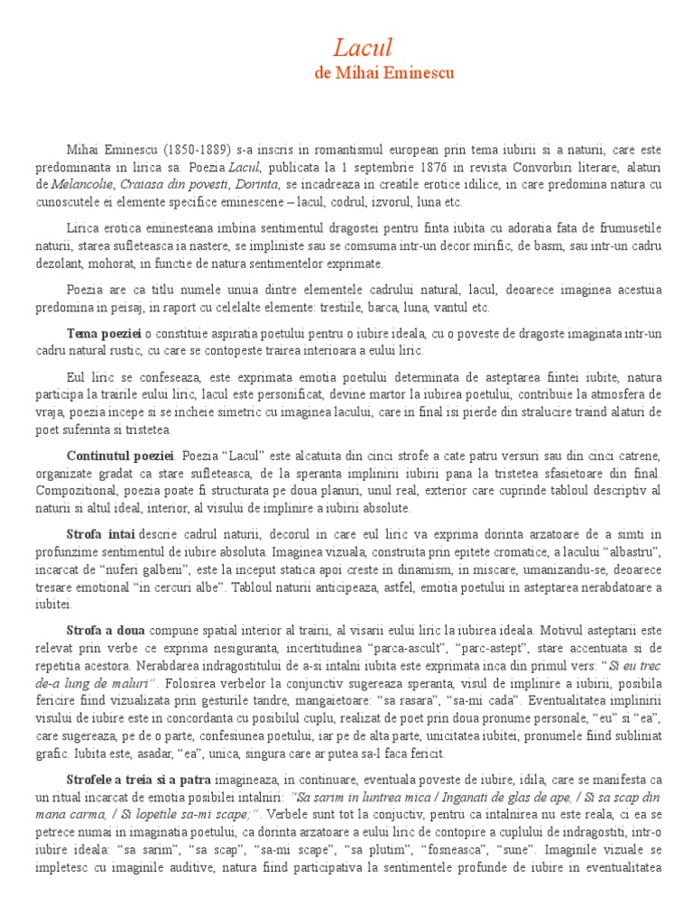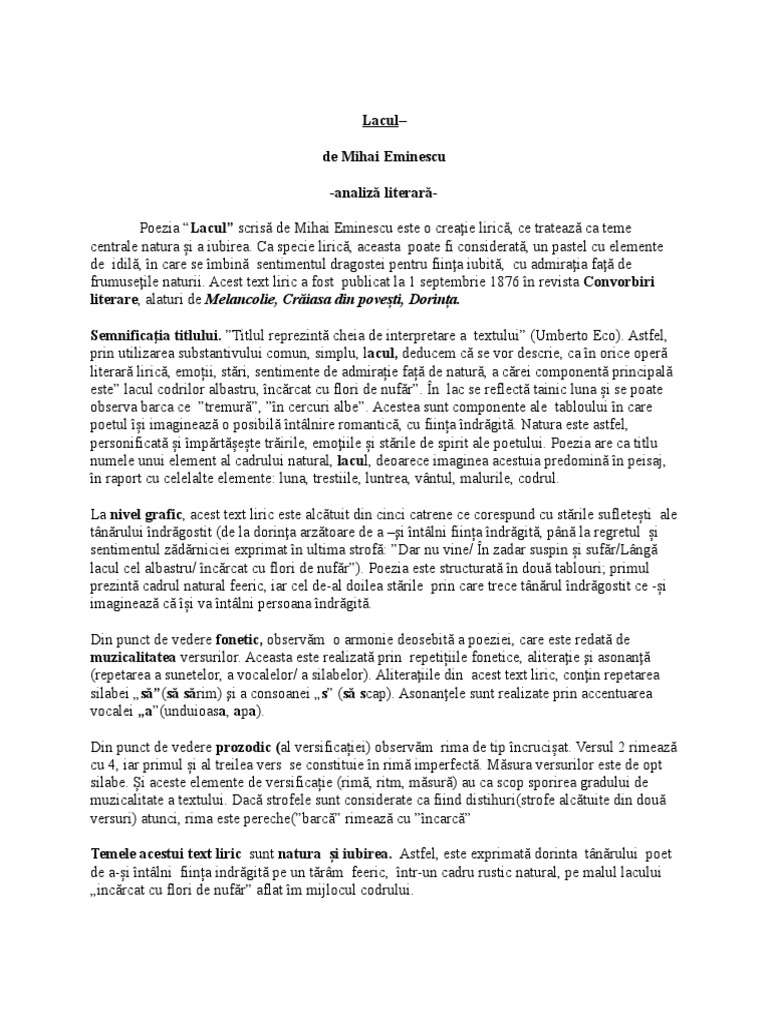 Referat Lacul De Mihai Eminescu 338381 Graduo