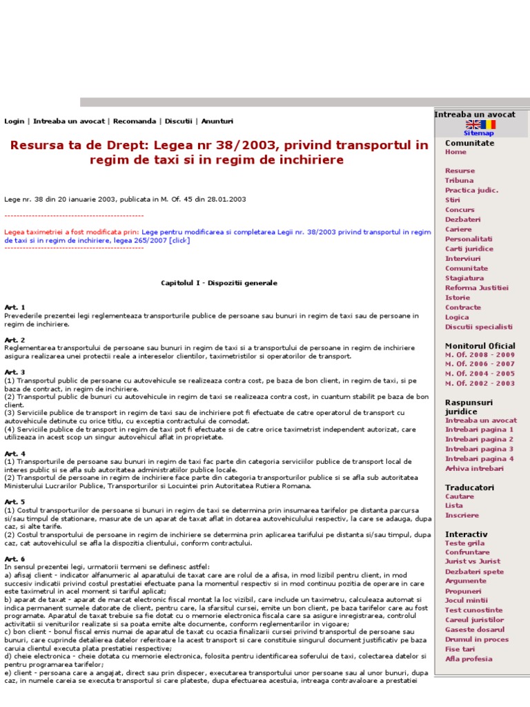 Legea Nr 38 Din 2003 Privind Transportul In Regim De Taxi Si In Regim De Inchiriere 2019