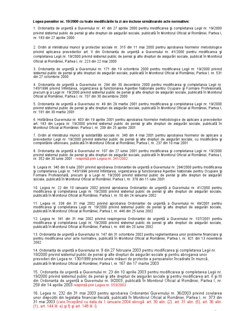 Legea Nr 19 2000 Privind Sistemul Public De Pensii Si Alte Drepturi De Asigurari Sociale Actualizata La 22 07 2007
