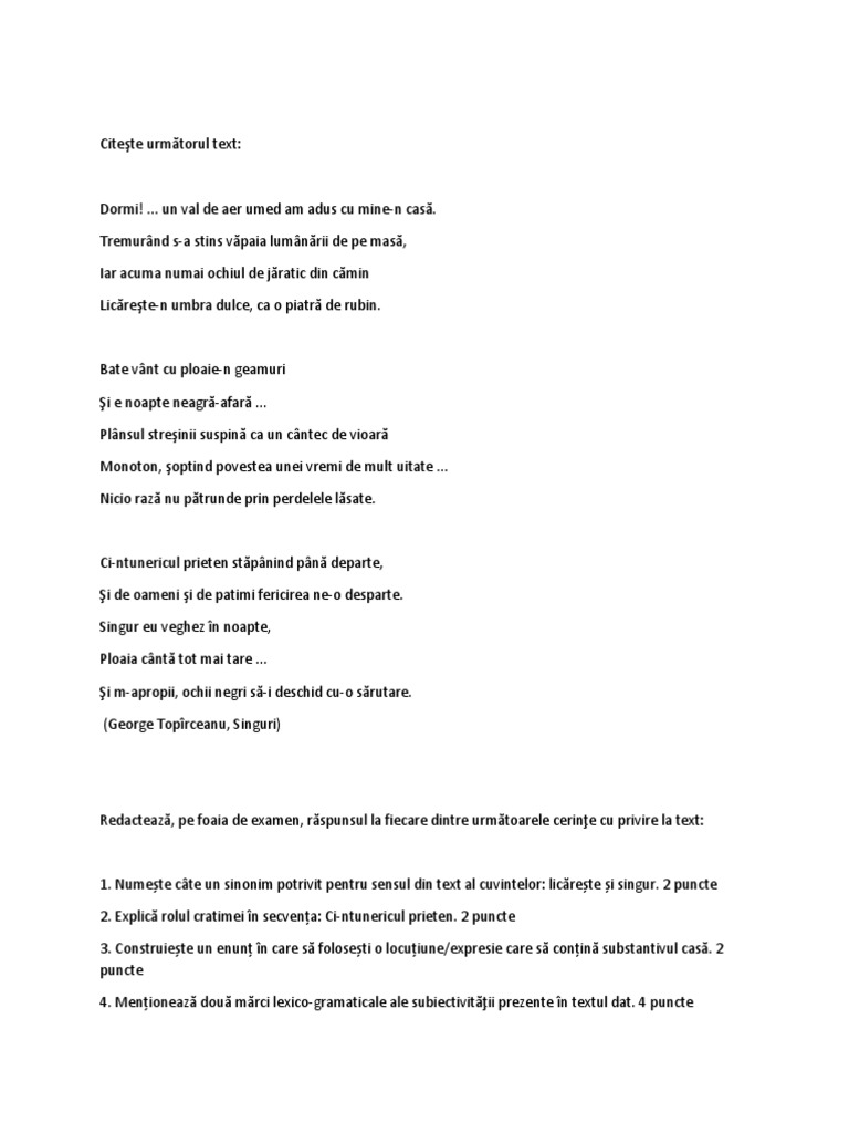 Modele De Subiecte Romană 2017 Subiectul I Profil Uman Liceunet Ro