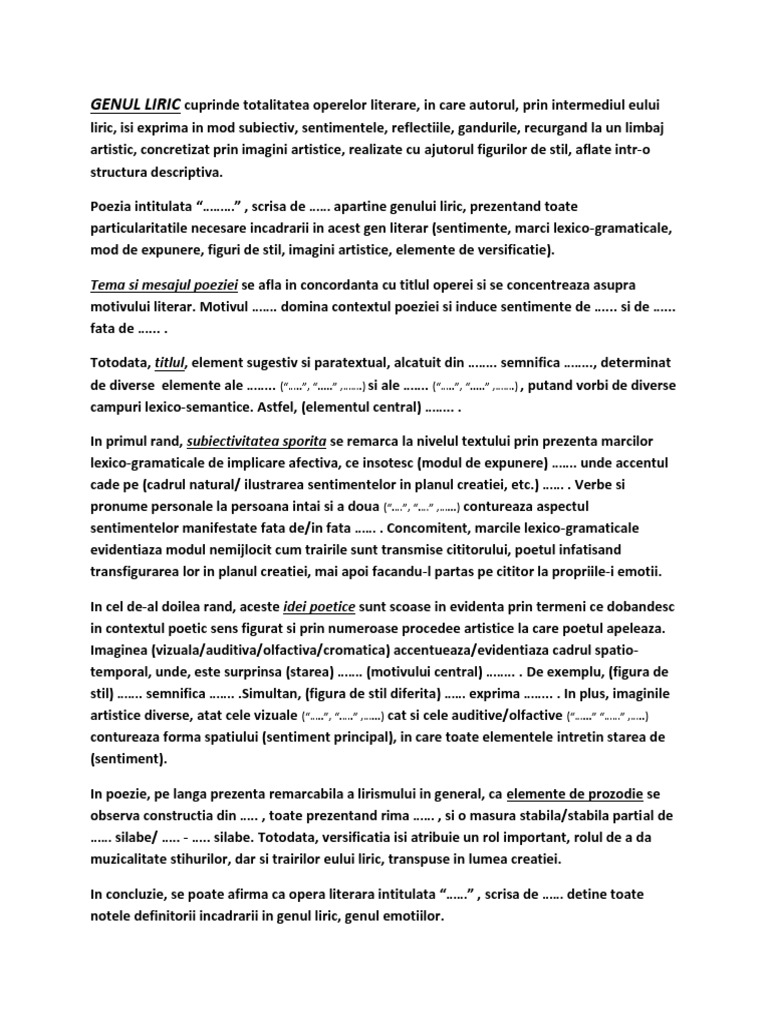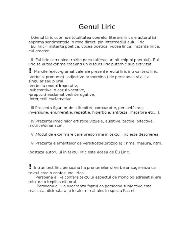 Bacalaureat Limba Romană Mărcile Eului Liric Wattpad