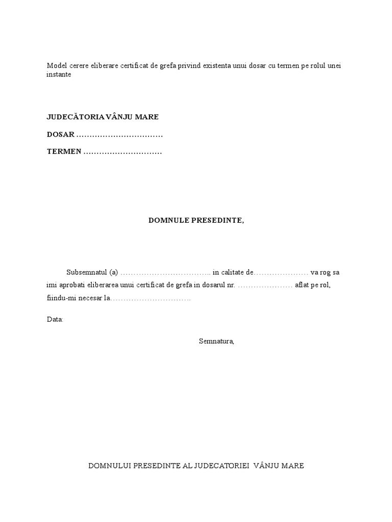 Model Cerere Certificat De Grefa