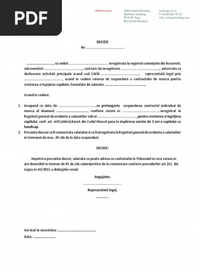 Cerere De Suspendare A Contractului De Munca Pentru Cresterea Copilului Pdf