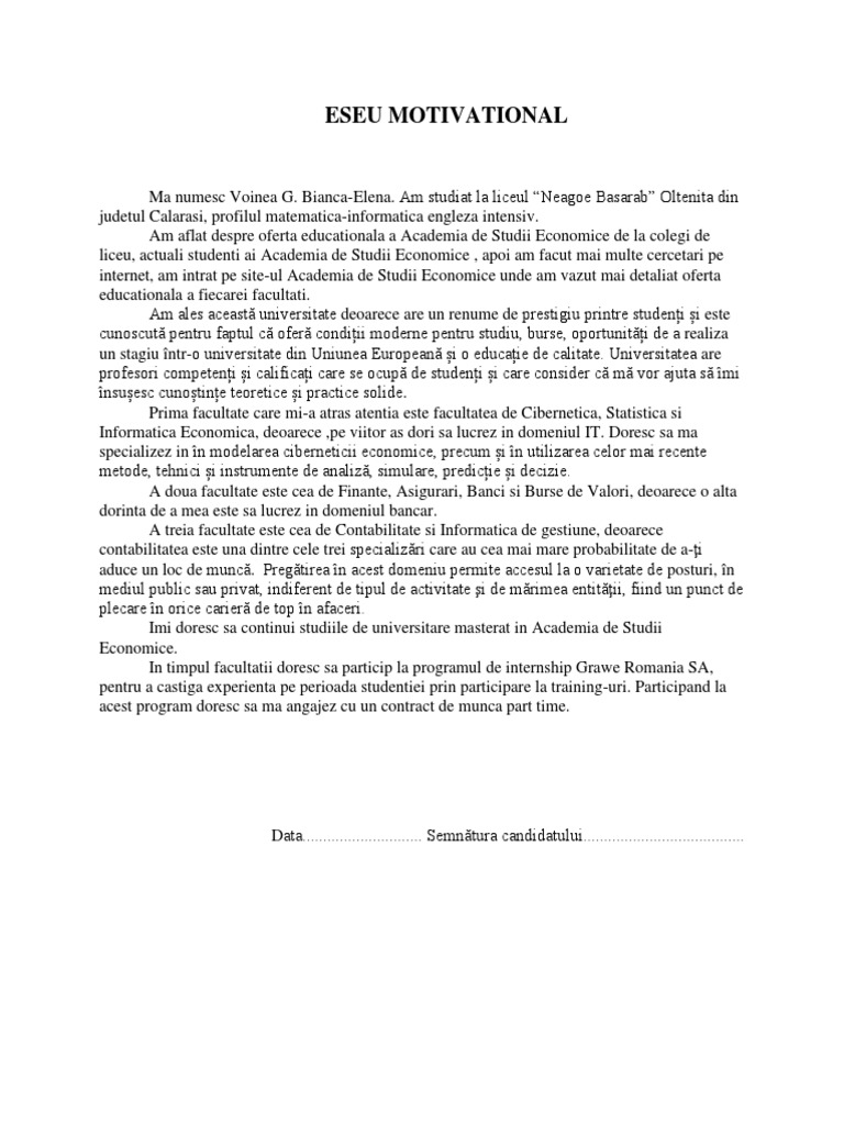 Admitere Facultate 2014 Ase Eseu Motivațional Structură Dcnews