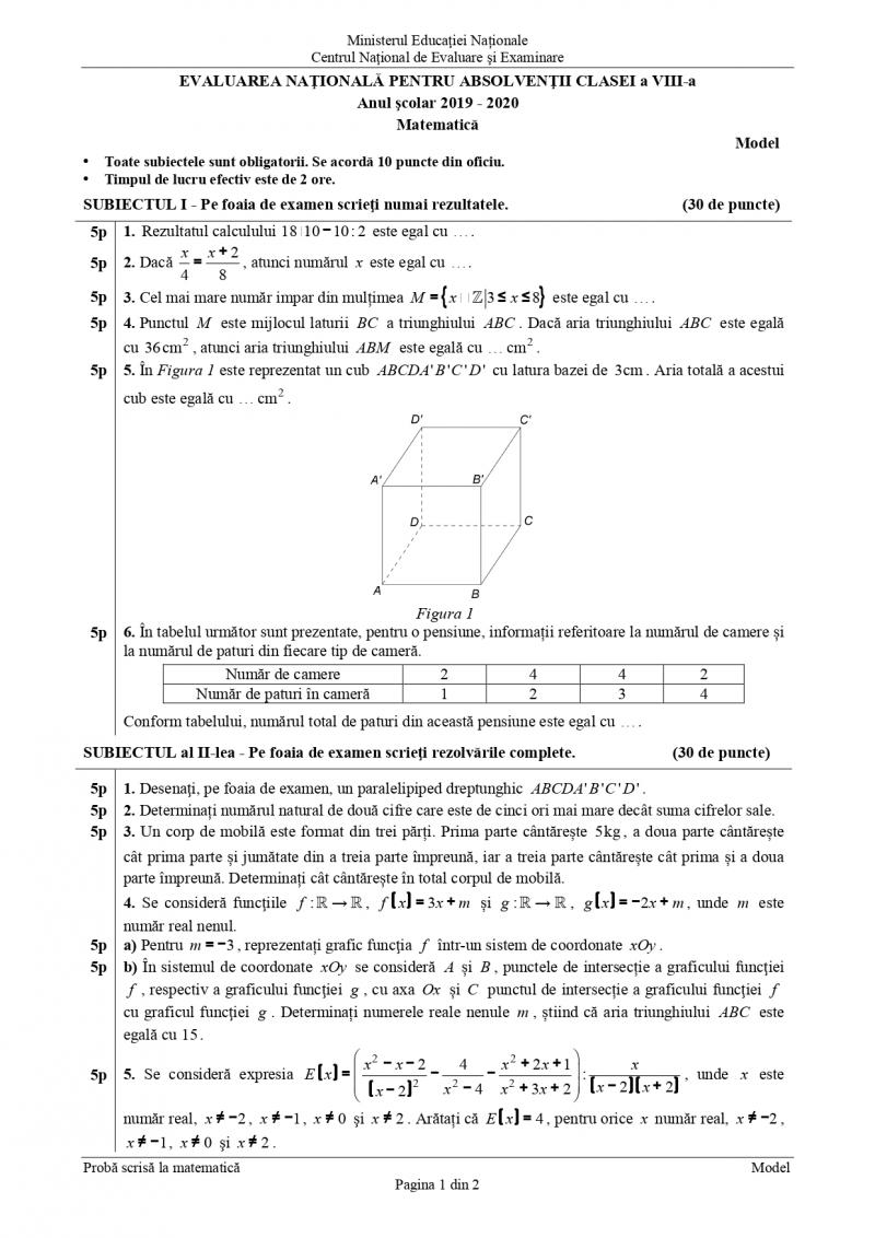 Evaluarea Naţională 2020 Subiecte Si Barem Pentru Matematică Model