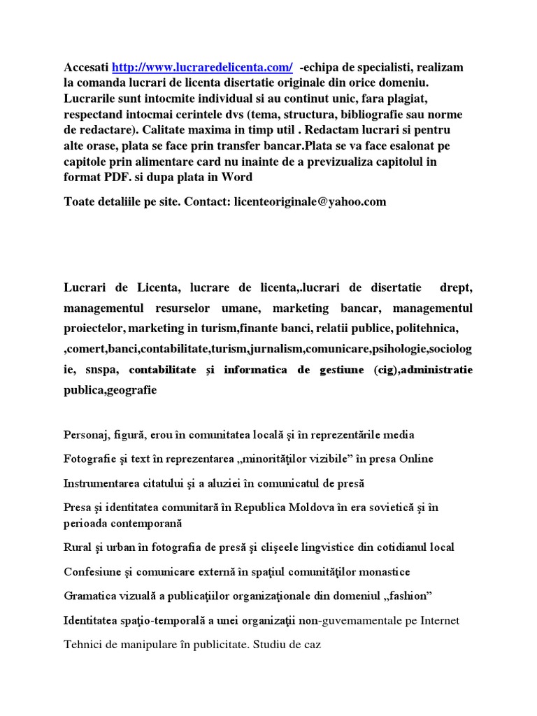 Lucrare De Licenta La Comanda Lucrare De Licenta Lucrare De Disertati