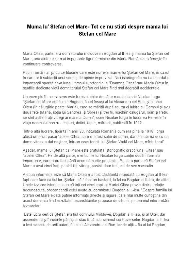 Comentarii Despre Muma Lui Stefan Cel Mare