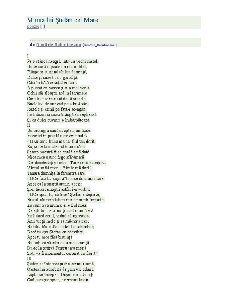 Legenda Istorica Muma Lui Stefan Cel Mare De Dimitrie Bolintineanu