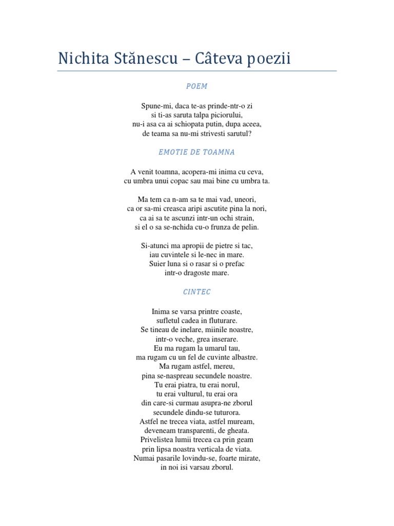 Nichita Stanescu Poezii De Dragoste