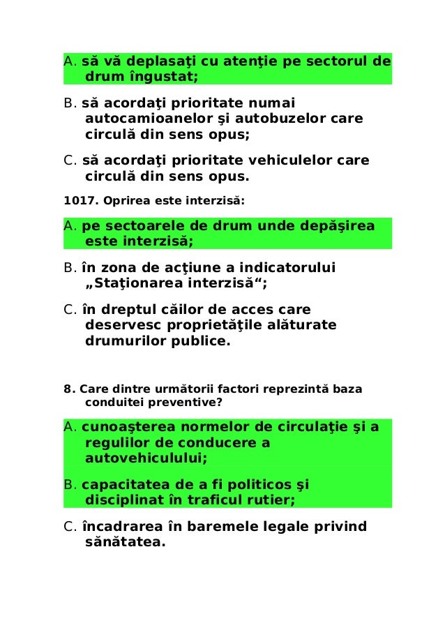 Intrebări Chestionare Auto Drpciv Capitolul Oprirea Staționarea și Parcarea Categoria C C1
