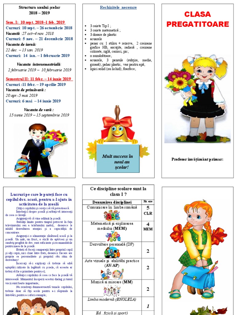 Imagini Pentru Pliant Clasa Pregatitoare 2017 2018 Word Education Character School