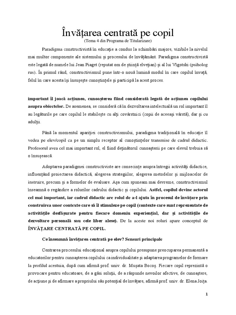 Invățarea Centrată Pe Copil